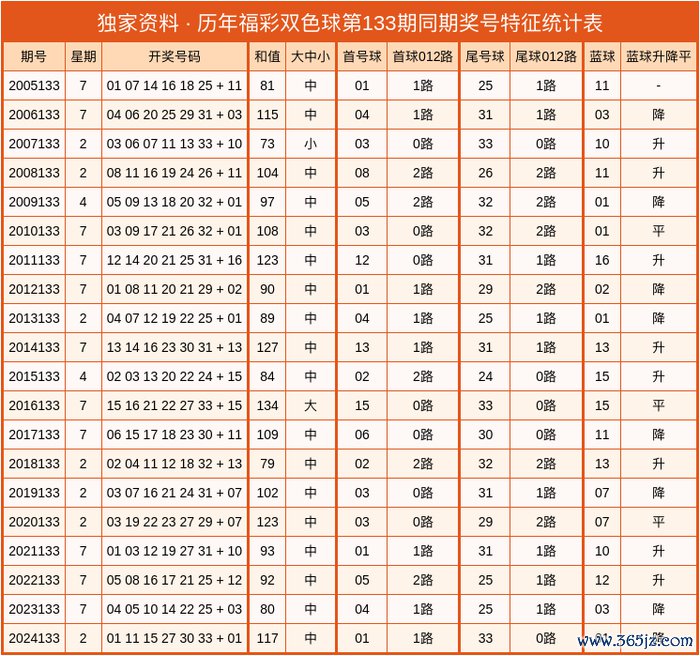 第2025133期双色球分析号码参考: