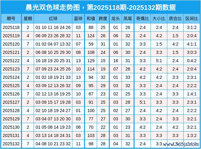 双色球第2025132期红球奖号为:04 08 10 21 23 32 ;蓝球11。红球号码质合比为1:5,奇偶比为2:4,三区比为3:1:2。